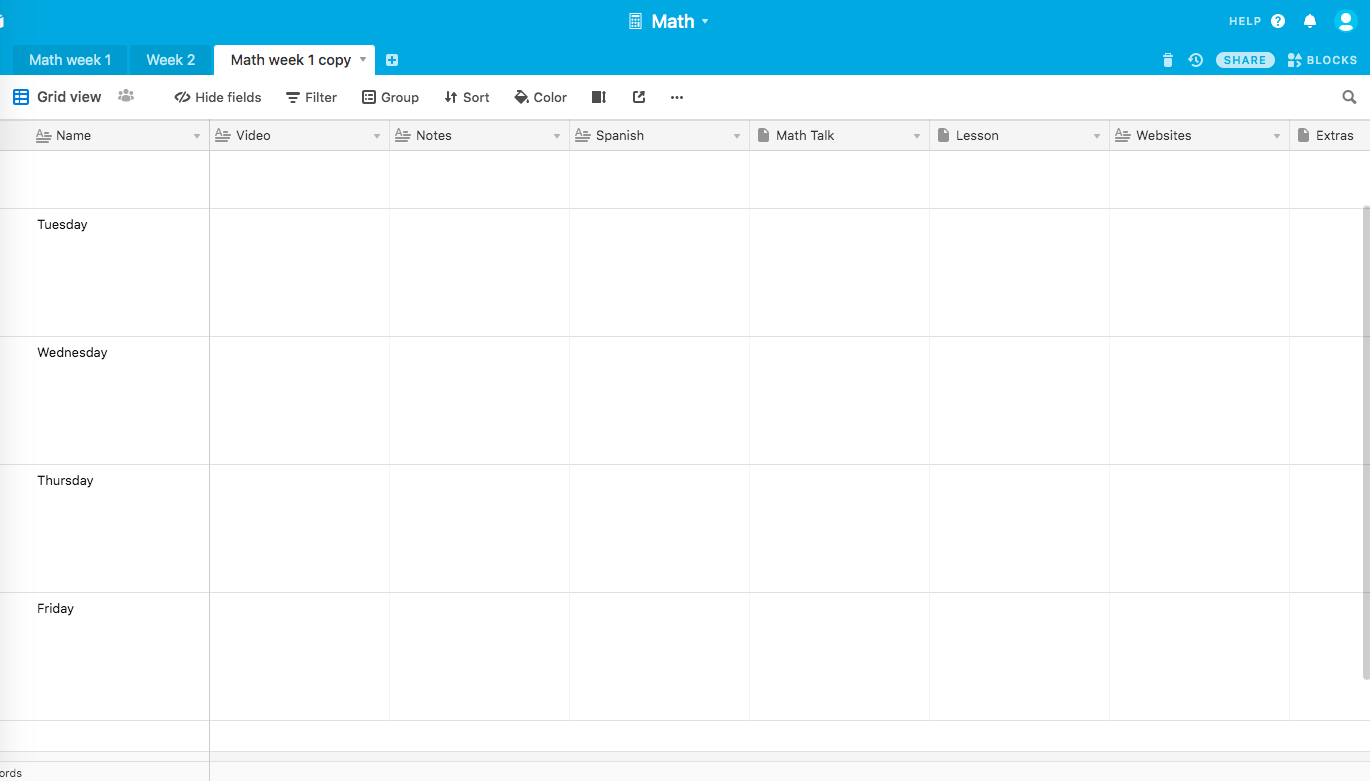 This base lets you create a rotating one week calendar of activities. Enter your activities, select the day of week for each activity, and enter the start and end times. Formulas will calculate the dates for the current week so you can see the activities