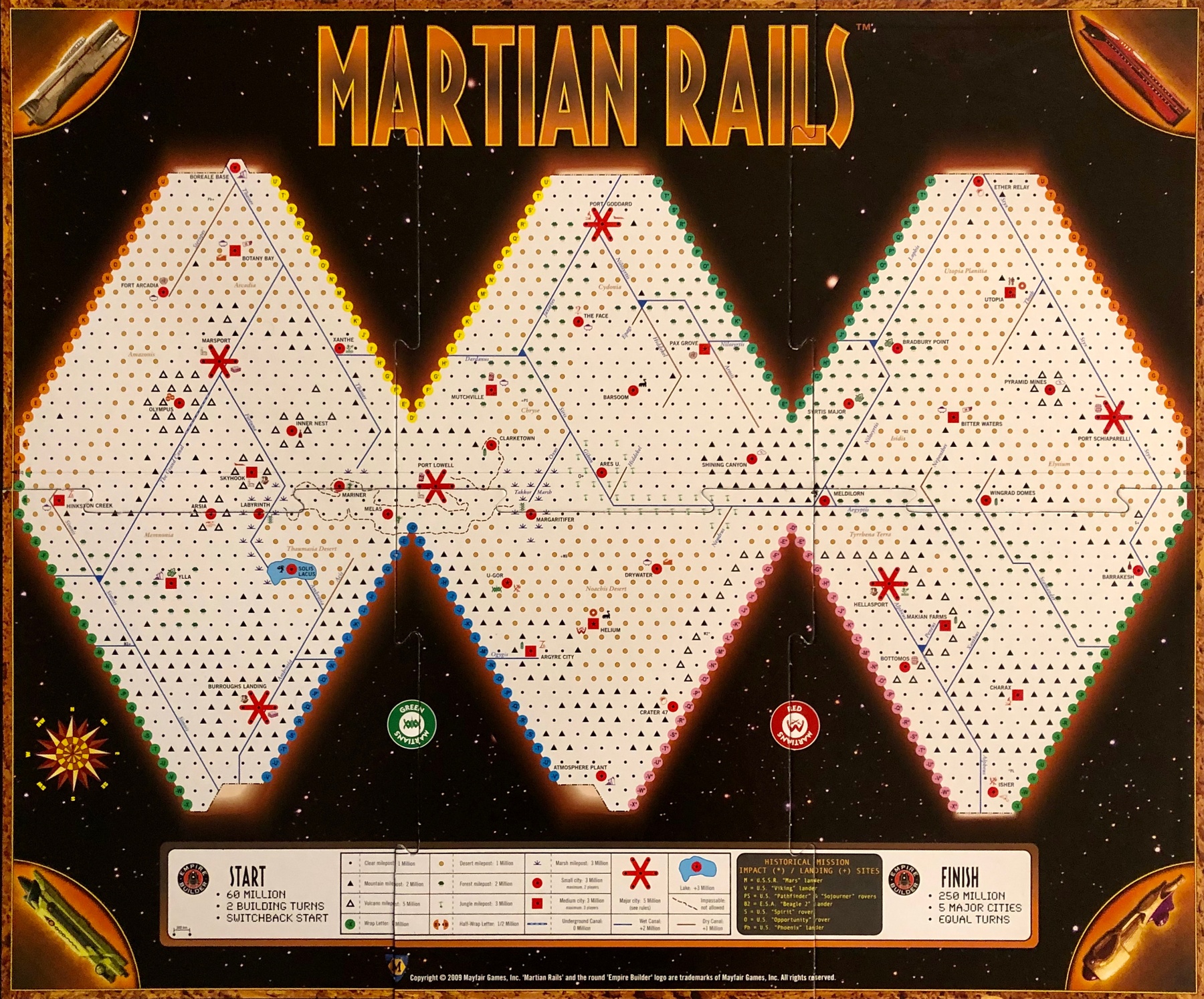 This base supports live gameplay for Martian Rails, and includes tracking for players, resources, transactions, and more. Martian Rails is a rail-builder style board game with the goal to move resources across the red planet. Planning your routes, cargo,