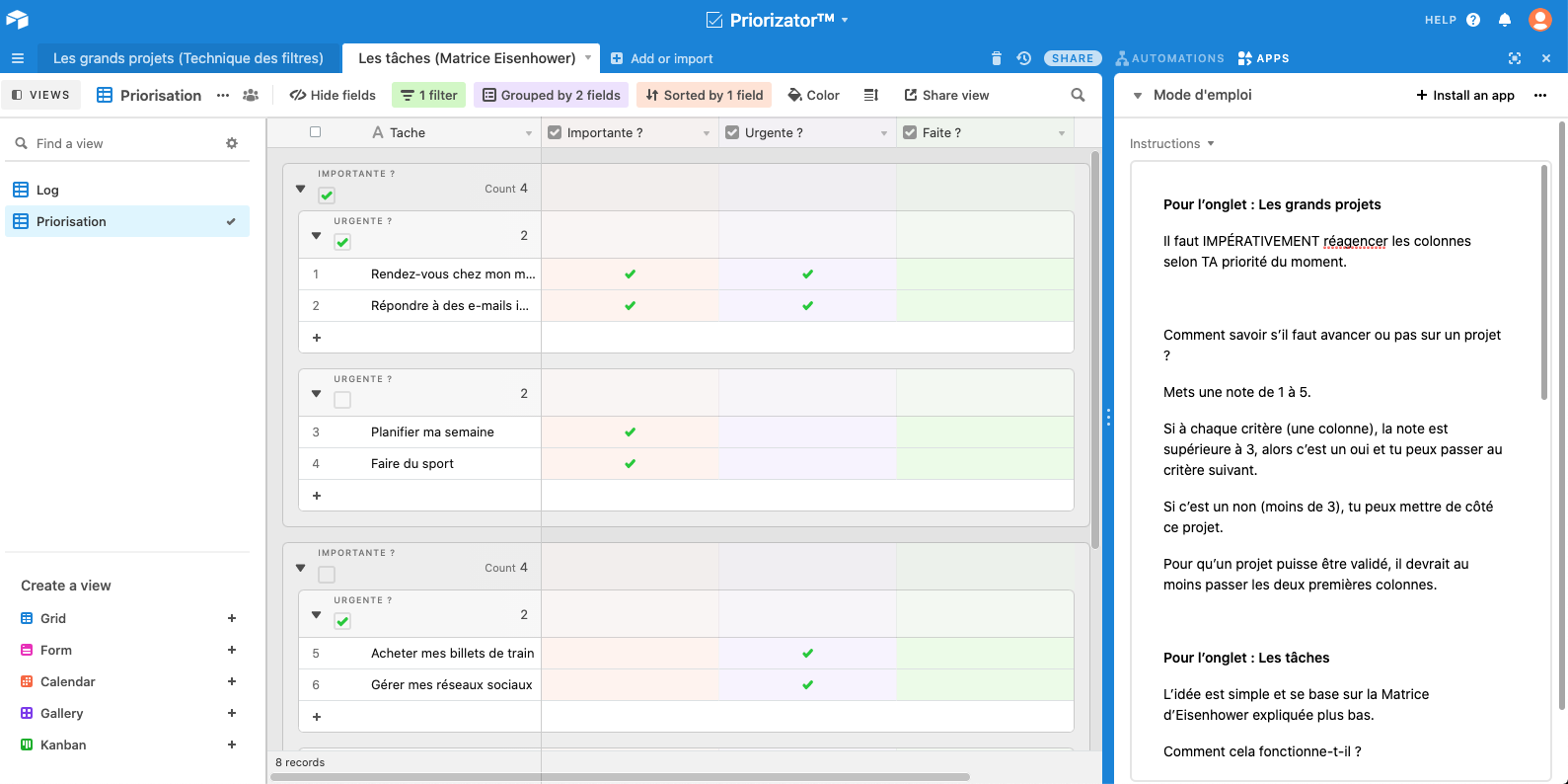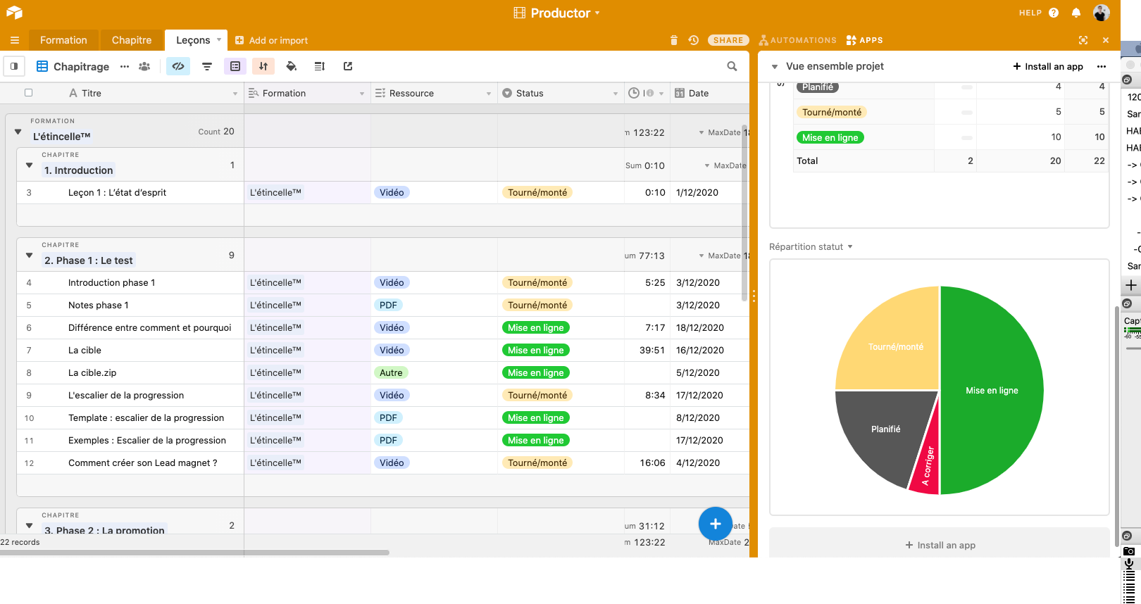 Cette base conçue en français vise à faciliter les processus de gestion de projets des petits organismes culturels et OBNL en structurant la planification et le suivi des projets et des tâches. Elle permet de visualiser simplement l'ensemble des informati