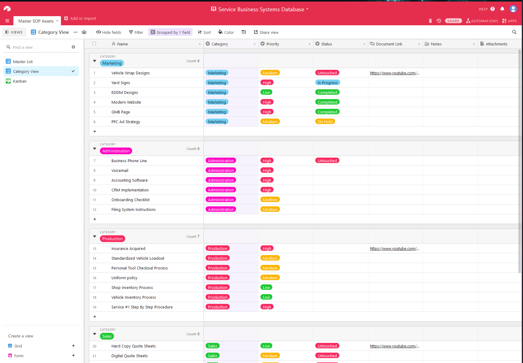 A simple way to visualize, track and sort your SOPs as a database.