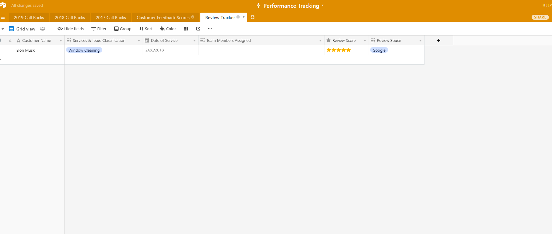 A dashboard for tracking callbacks, customer feedback, and technician performance. For use in a service business.